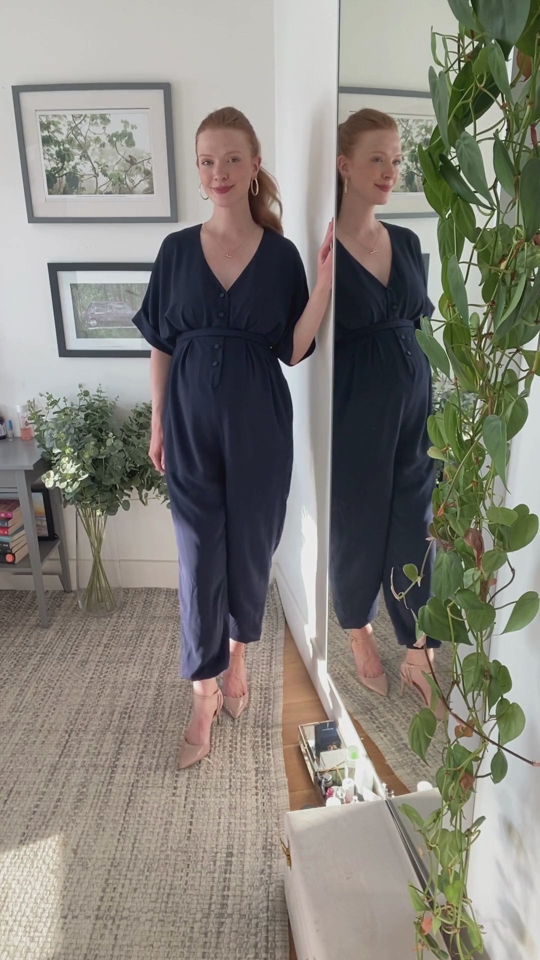 Navy Maternity Jumpsuit, Breastfeeding friendly style